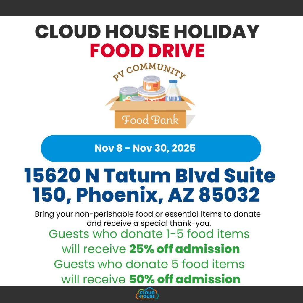 Cloud House Holiday Food Drive Date: Nov 8 – Nov 30, 2025