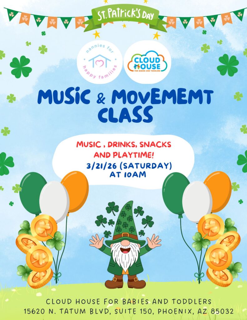 🎁 We are celebrating St. Patrick’s Day in our Music & Movement class! Please have your child wear green for good luck as we dance and enjoy fun ‘lucky’ activities like a Leprechaun Freeze Dance/ We’ll also have festive snacks for the kids. It’s going to be a fun and magical class! Best 2 dancers receive FREE Cloud House admission for their next visit! 🎁